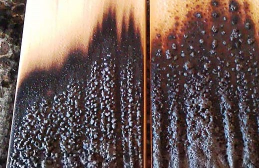 ogień dla trudnopalnego wyrobu drewnianego użytkowanego wewnątrz zgodnie z normą EN 16755 – DRF klasa INT1i INT2.